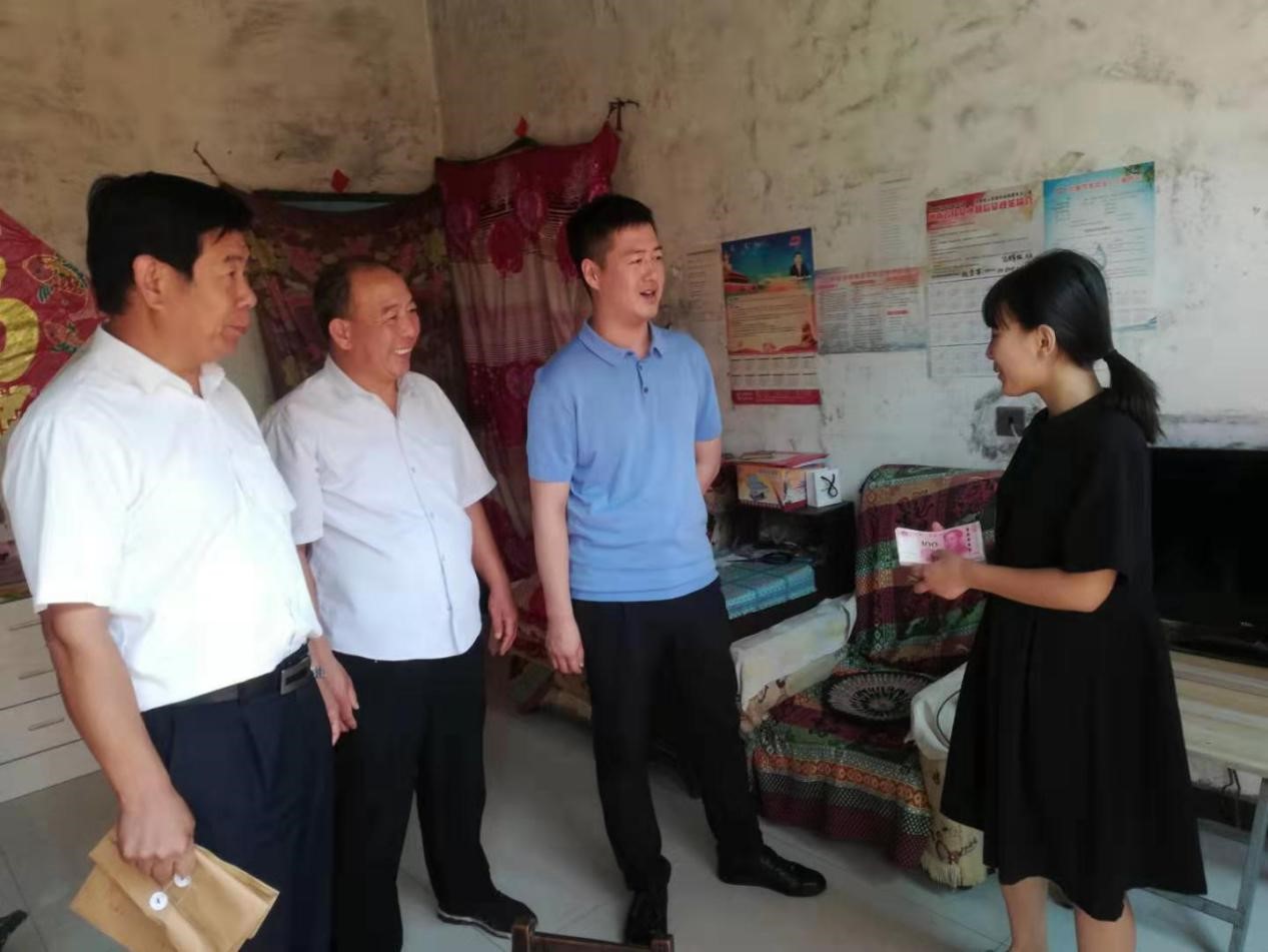 金秋將至,又是莘莘學(xué)子收獲的季節(jié),為進(jìn)一步弘揚(yáng)重視教育、尊重知識(shí)、鼓勵(lì)成才的社會(huì)風(fēng)氣,幫助貧困大學(xué)生順利進(jìn)入大學(xué)校園。 8月31日,公司總經(jīng)理助理曲笑輝,工會(huì)主席路建存在申村黨支部書記郭慶法的陪同下,深入申村貧困家庭郭亭于家中,將8000元助學(xué)金送到利用高考結(jié)束的空閑時(shí)間剛剛打工回來的郭亭于手中。